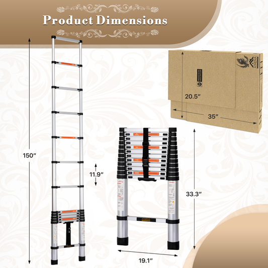Athena Collection 12.5ft/13-Step Aluminium Extension Telescopic Ladder