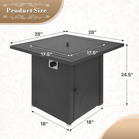 Athena Collection 2 in 1 Fire Pit Table for Outside Patio 50000 BTU Output Propane Gas Square Steel Fireplace Outdoor 28 Inch BBQ Fire Table with Tabletop Lid and Lava Rock, Gray