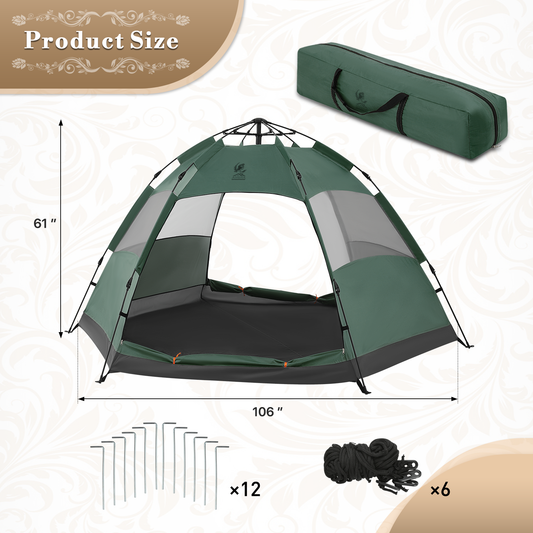 ATHENA COLLECTION Camping Tent Dome 106''Length Olive Green