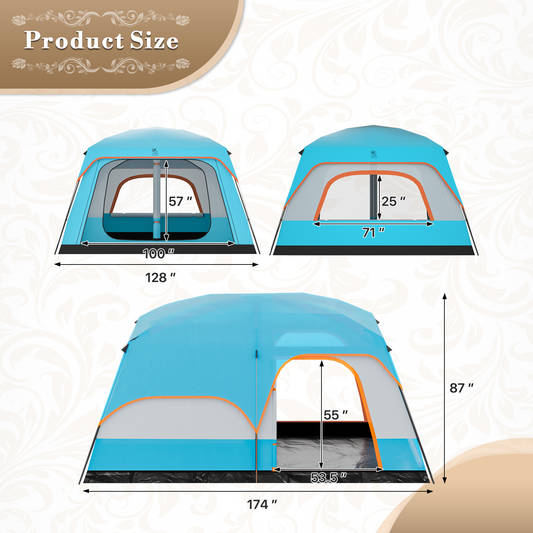 ATHENA COLLECTION Camping Tent Cabin 181''Length Blue