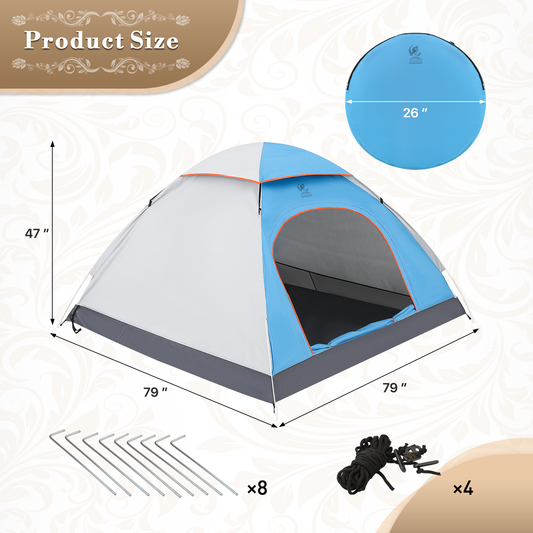 ATHENA COLLECTION Camping Tent Dome 79''Length Blue